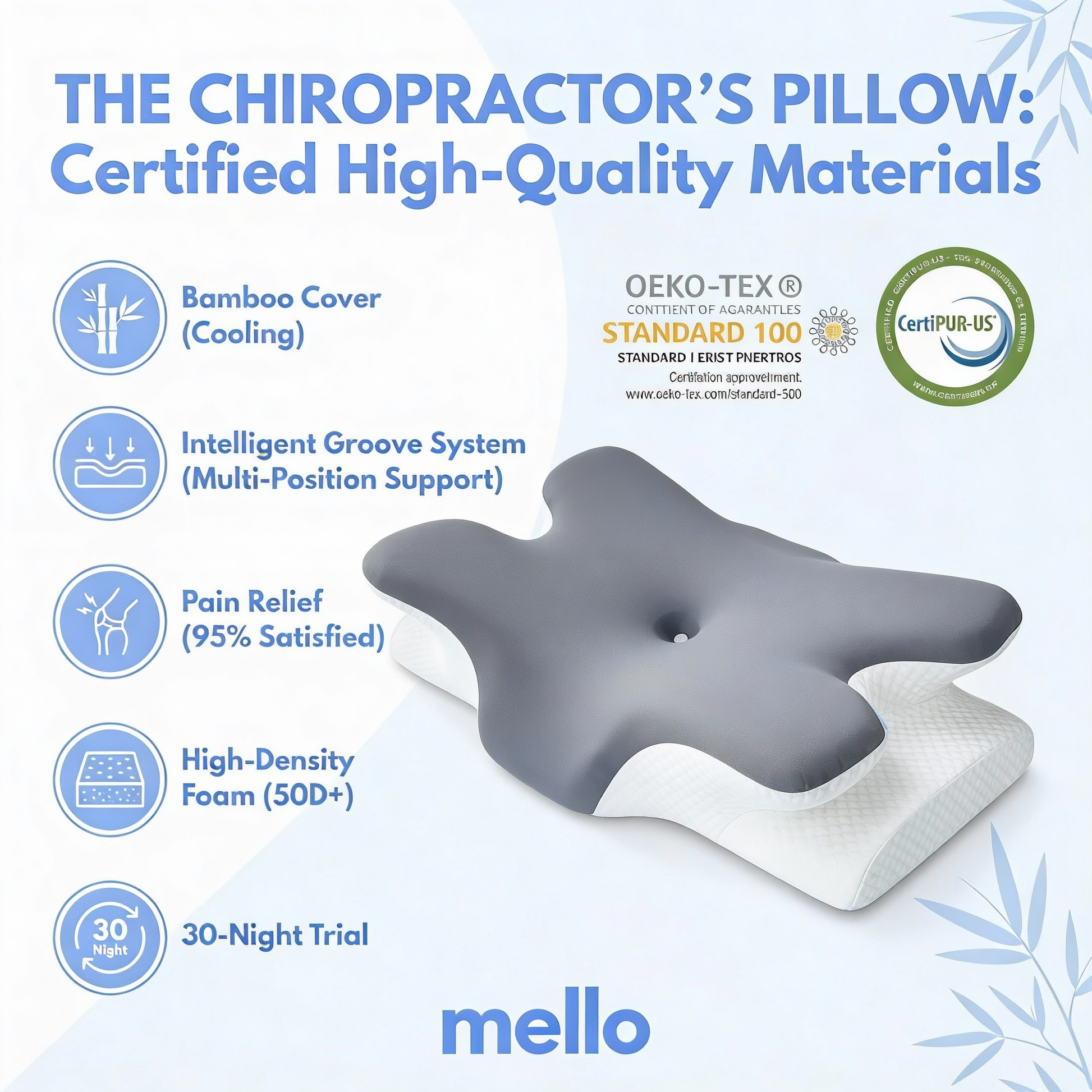 Deep sleep shouldn't be a luxury - it should be your reality. Mello supports your body naturally so you can finally stop fighting your pillow. This isn't just a pillow. It's peace in every position
