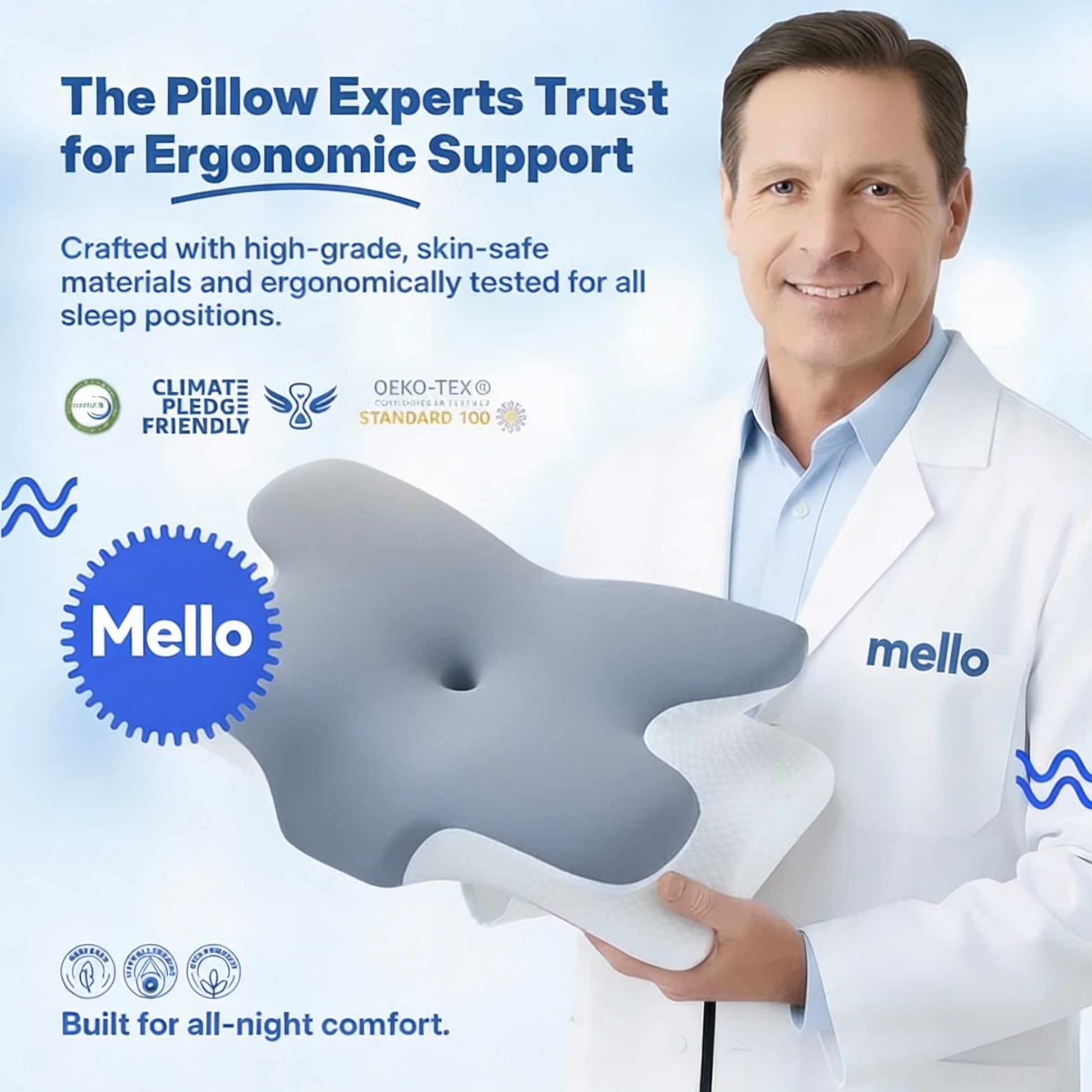 Mello works whether you're on your side, back, or stomach. The contoured shape adapts to your body - not the other way around.